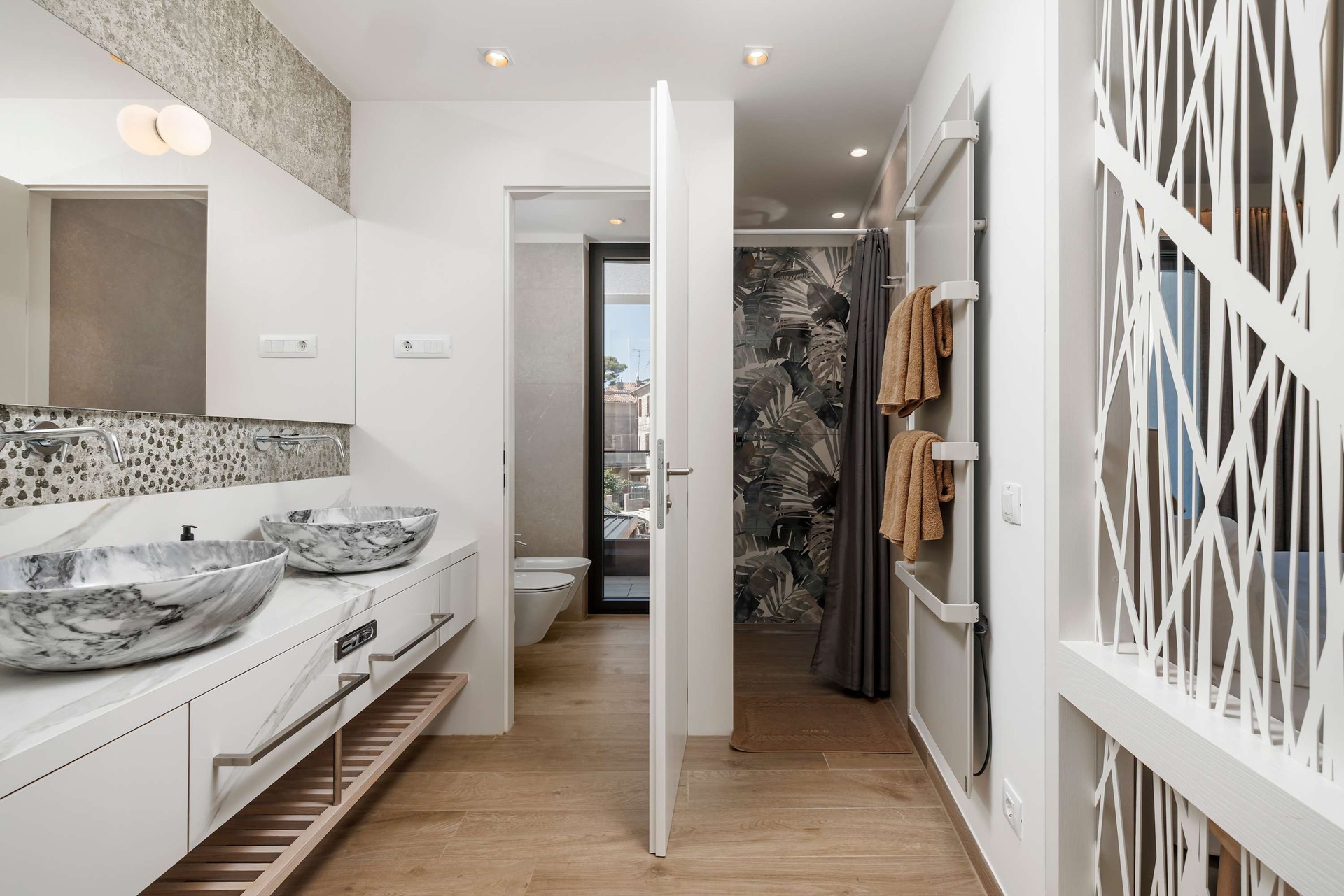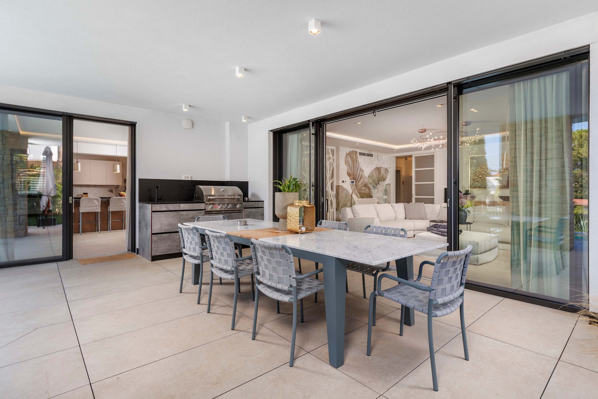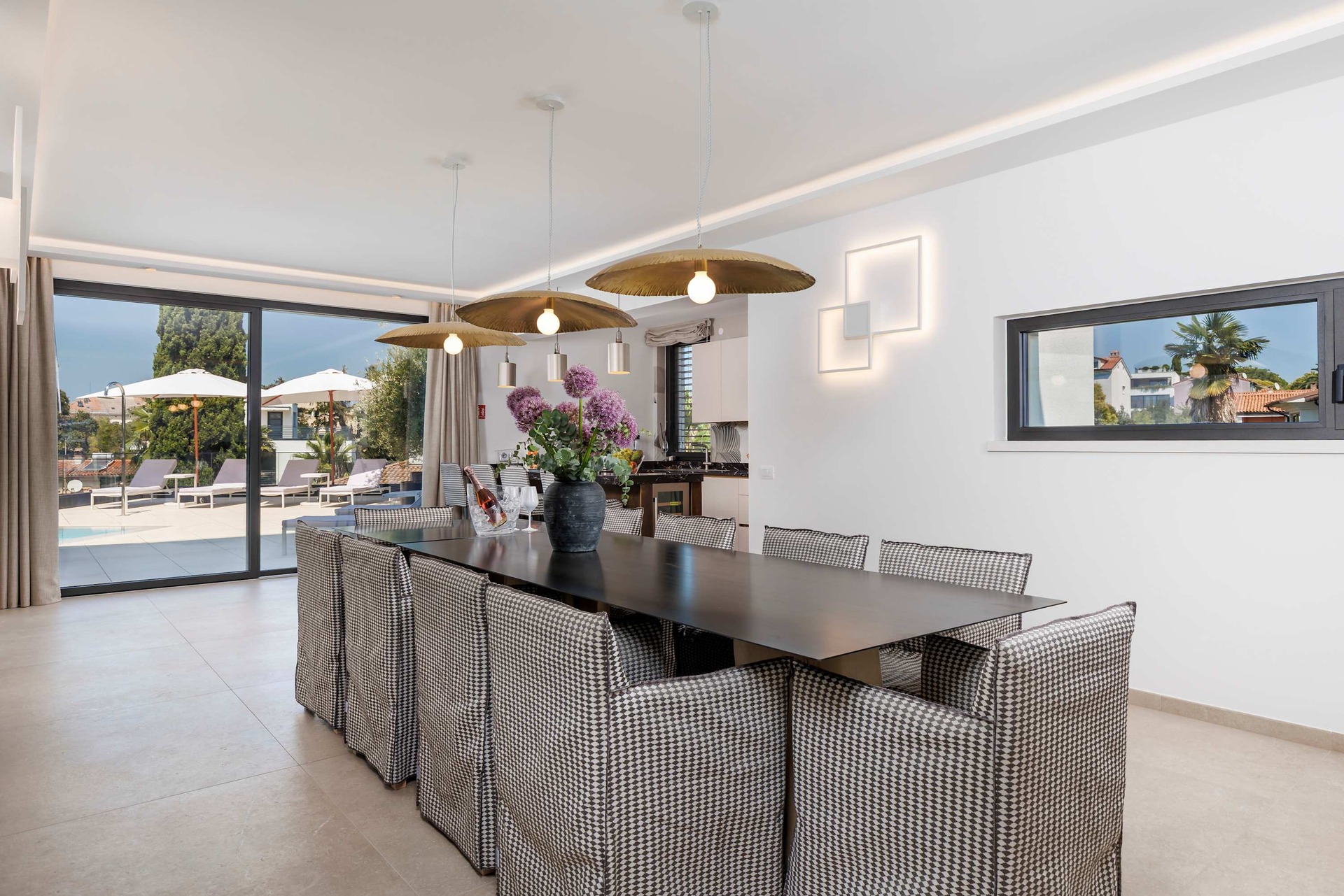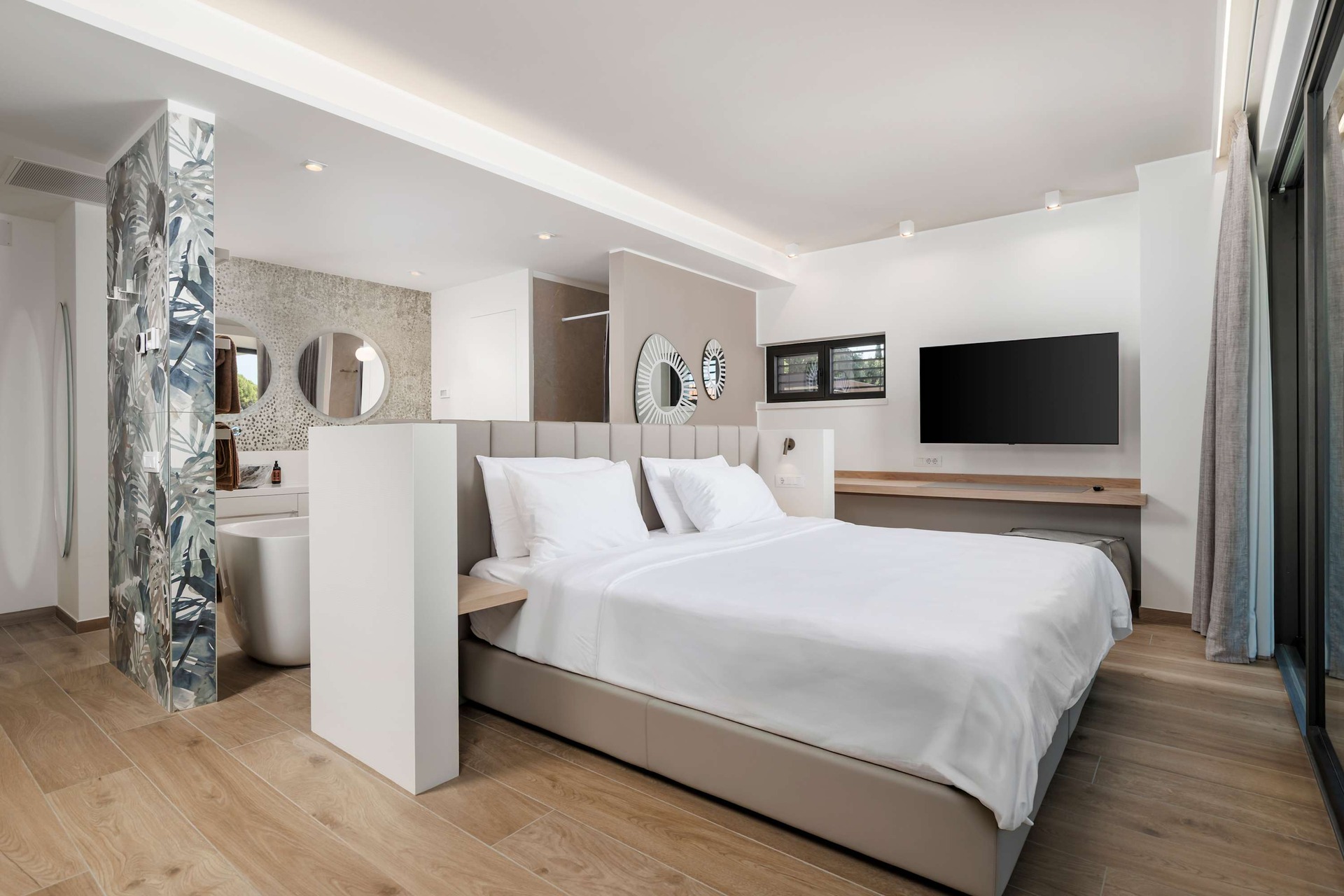 Villa Albion is a luxurious 5-bedroom retreat in Rovinj, designed for guests who value privacy, comfort, and elegance. Ideally located within walking distance of the old town, marina, and popular beaches like Mulini, this exclusive villa offers a peaceful haven close to the Adriatic coast’s finest attractions. Each of the five spacious bedrooms includes a king-size bed, en-suite bathroom, Smart TV, minibar, safe, and access to a private terrace with scenic views. The outdoor area is perfect for relaxing and entertaining, featuring a heated infinity pool, Jacuzzi, Finnish sauna, sun loungers, and umbrellas.