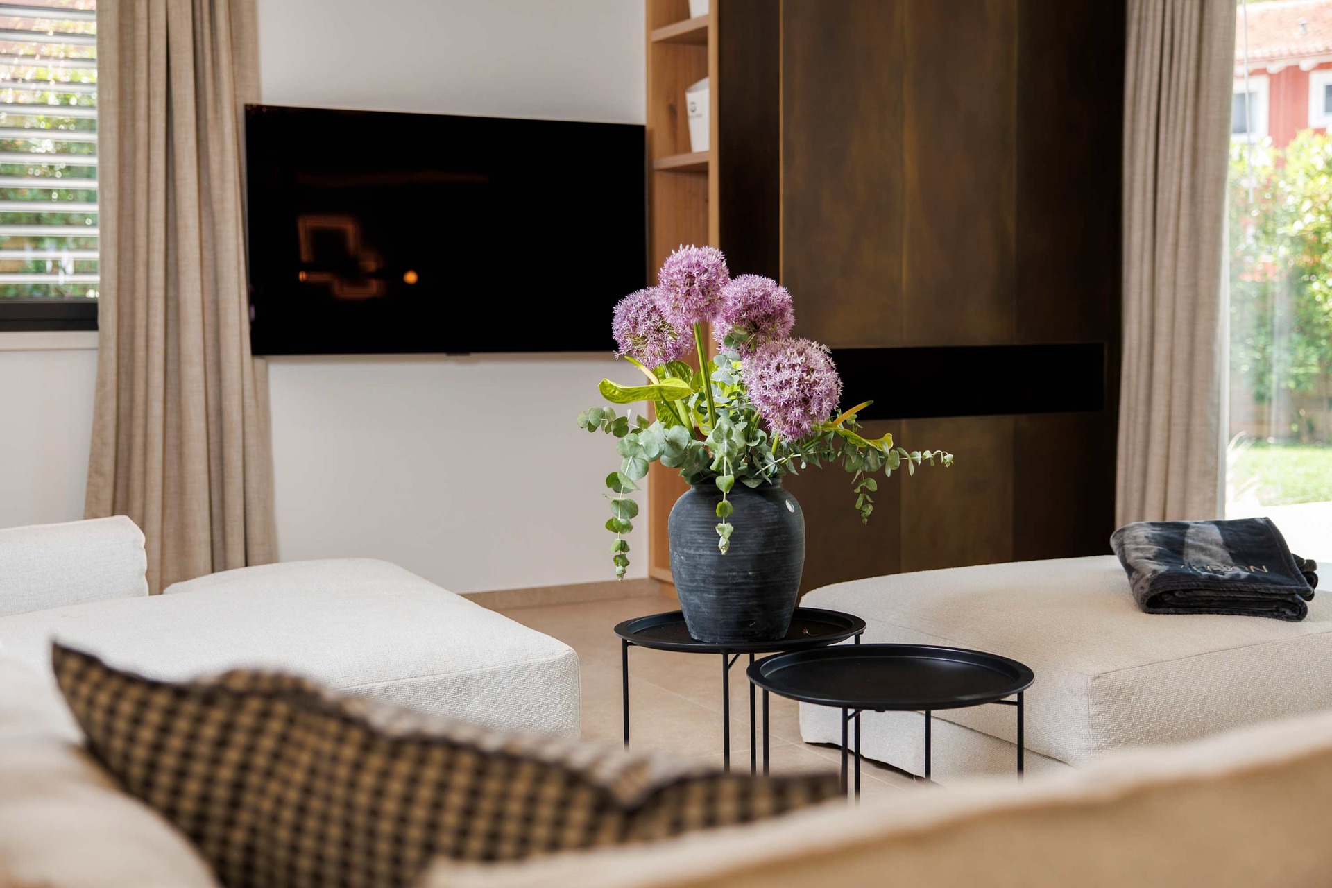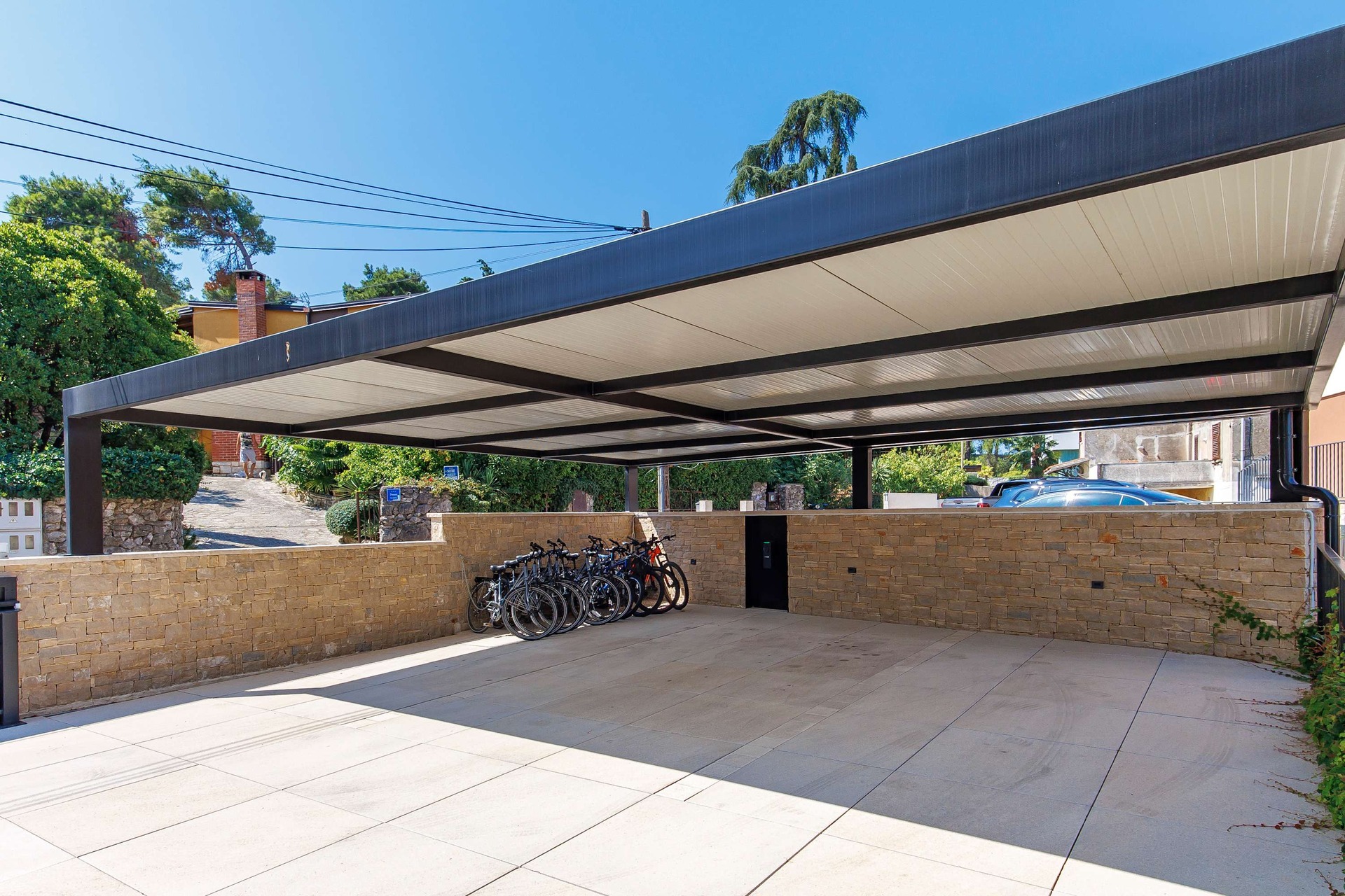 The villa blends modern design with top-tier amenities. A stylish living room with a fireplace and Bang & Olufsen sound system invites relaxation, while the fully equipped kitchen includes high-end appliances, a coffee machine, and an ice maker. An elevator connects all levels, and high-speed Wi‑Fi is available throughout the property. Additional conveniences include private parking for several cars, an EV charging station, and full air-conditioning. Whether you're planning a family getaway or a luxury group escape, Villa Albion offers an exceptional experience in one of Croatia’s most charming coastal towns.