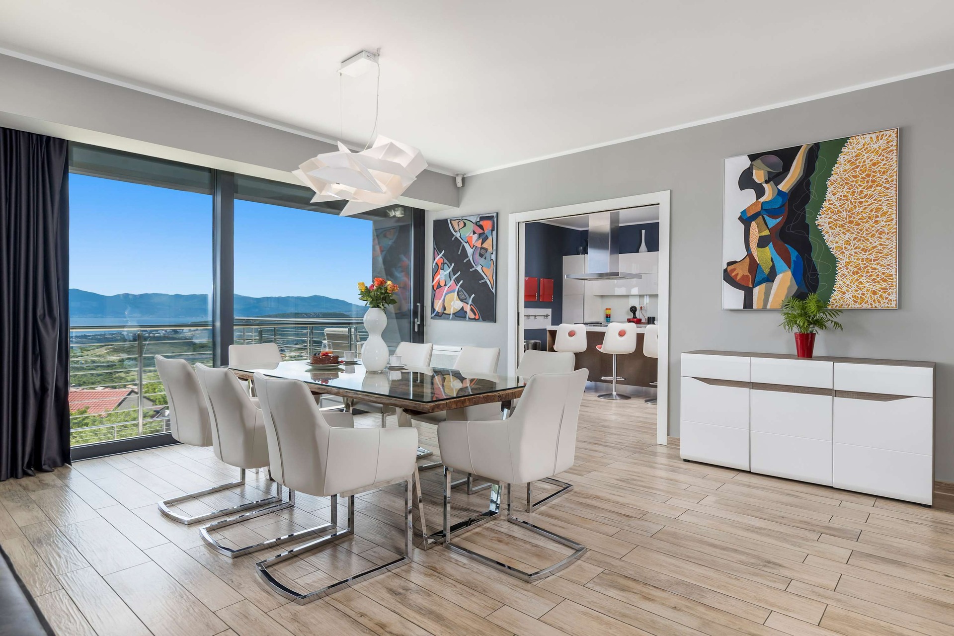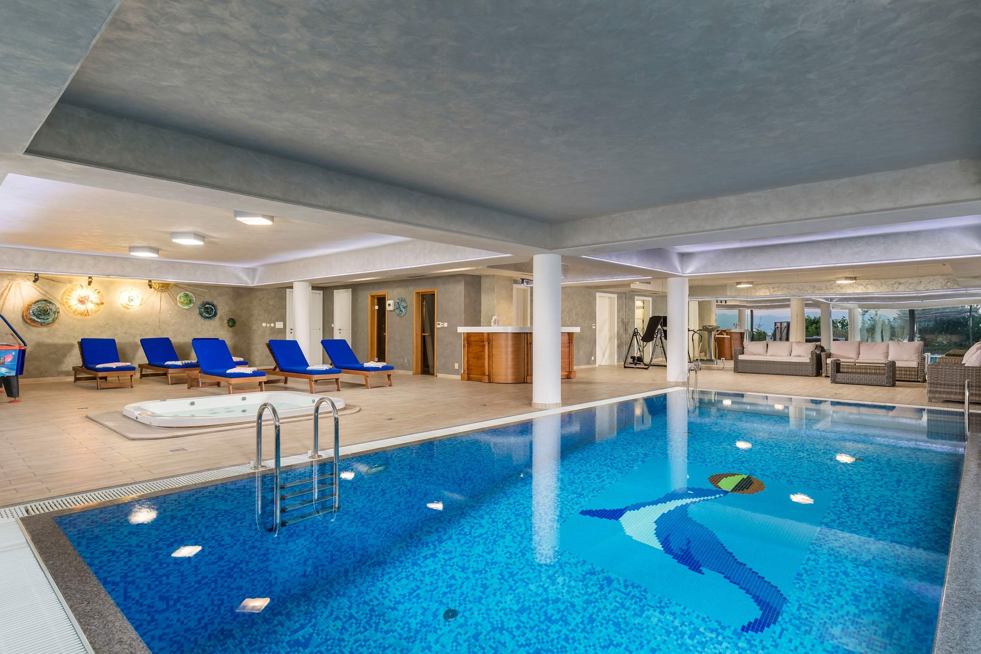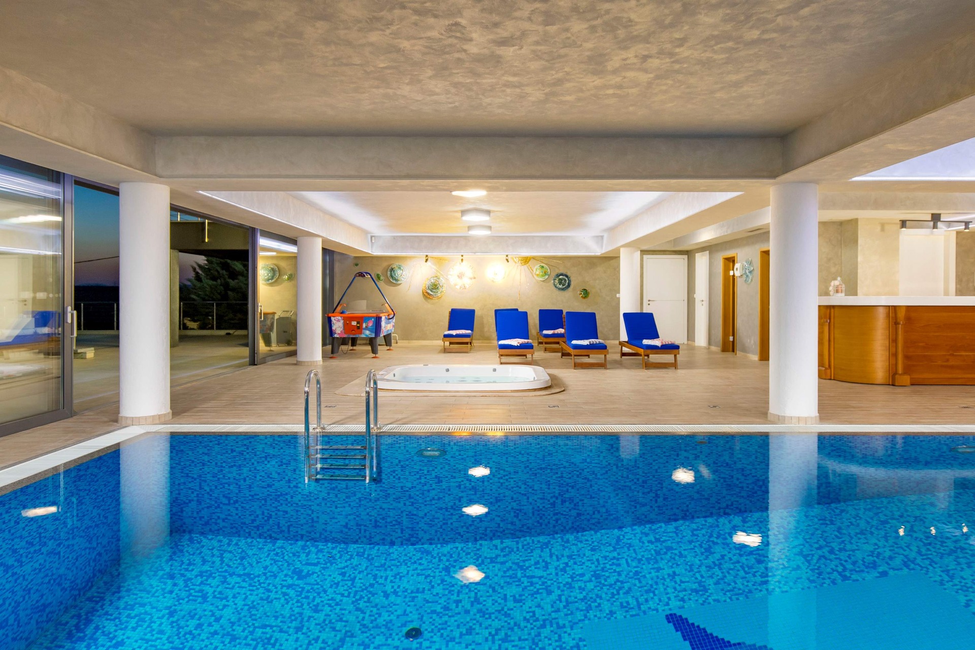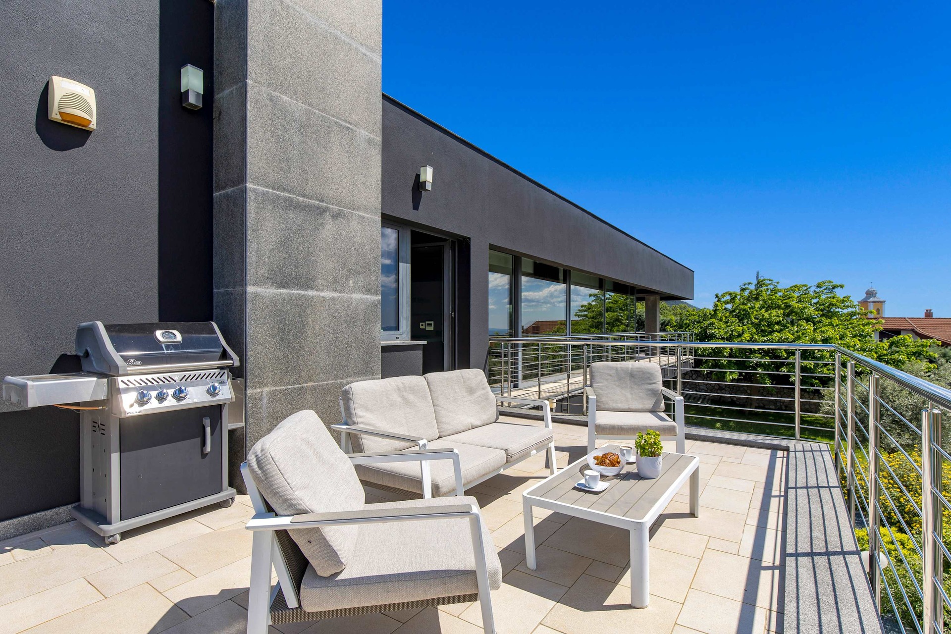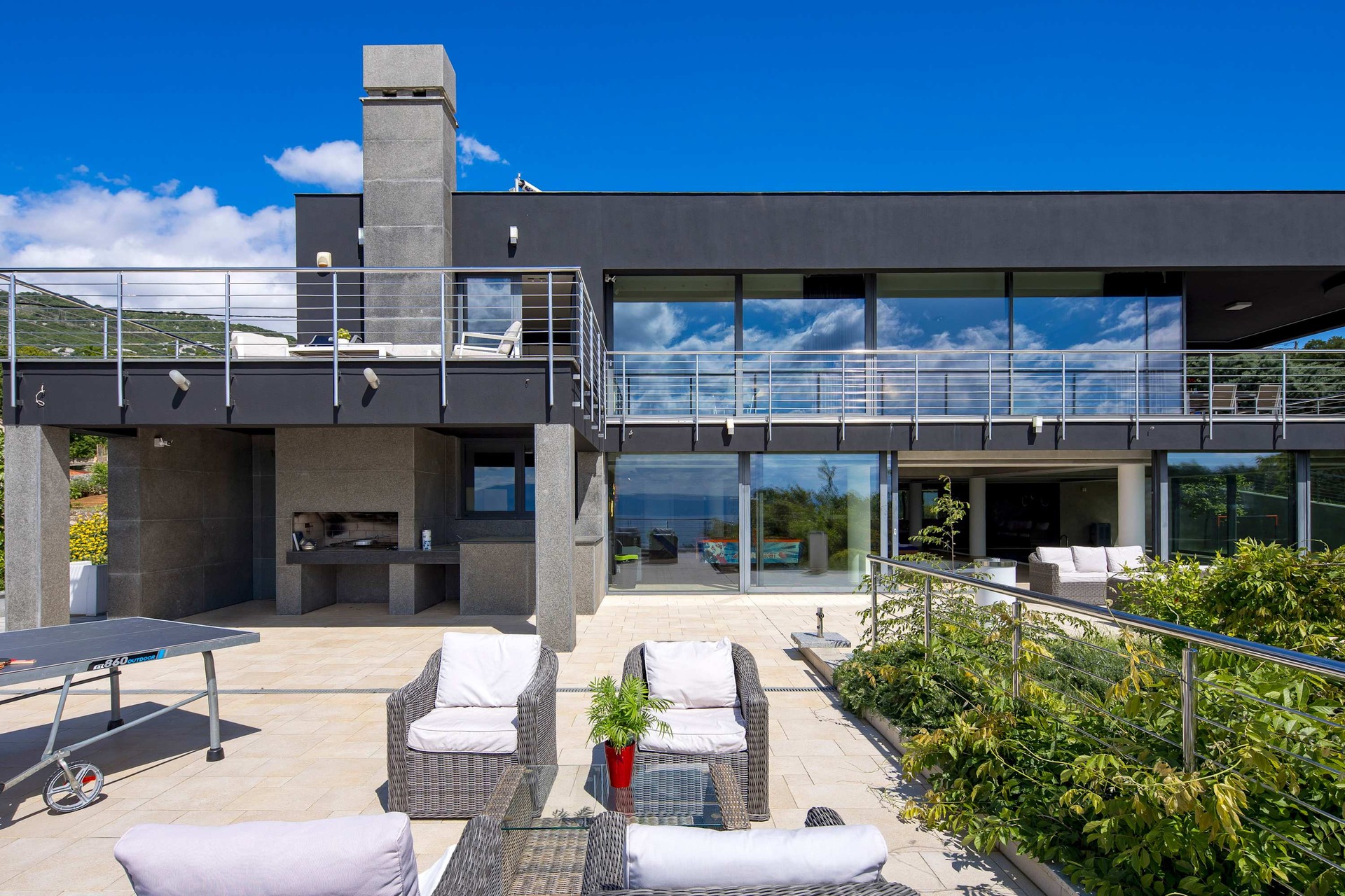 Indulge in elevated luxury at Villa Biocrystal a fully climatized, three-story sanctuary perched above the Adriatic, offering sweeping views of Croatia’s breathtaking coastline and islands. Crafted for those seeking refined comfort, this elegant villa features a private elevator connecting all levels: from the enclosed garage and state-of-the-art gym, to the serene indoor heated saltwater pool, Jacuzzi, and sauna, up to the exquisite sea-view suites. Accommodating up to 10 guests, the villa boasts 4 sophisticated en suite bedrooms with king-size beds, plus sofa beds, cribs, and high chairs on request. Stay seamlessly connected with fibre-optic Wi-Fi and Smart TVs in every room. The fully equipped designer kitchen and terrace barbecue invite gourmet moments against a backdrop of golden sunsets. Leisure abounds with ping pong, air hockey, a trampoline, and access to a nearby tennis court. Scenic hiking trails begin just minutes away. Just a short drive from beaches, boutiques, and fine dining, Villa Biocrystal is your private Croatian retreat where wellness meets elegance.